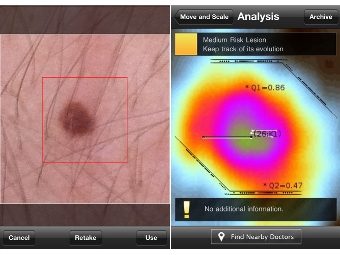 рекомендується відвідати лікаря. Також, програма зберігає попередні знімки і тим самим дозволяє побачити розвиток родимок у часі.